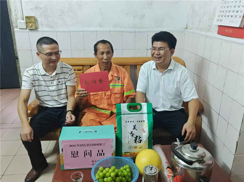 为及时把党和政府的关怀送到广大职工群众的心坎上,9月26日下午,市总工会党组成员、副主席肖伟旗带队到武江区开展国庆节送温暖慰问活动,走访慰问劳动模范和困难职工代表。区人大常委会副主任、区总工会主席谭木初等陪同。