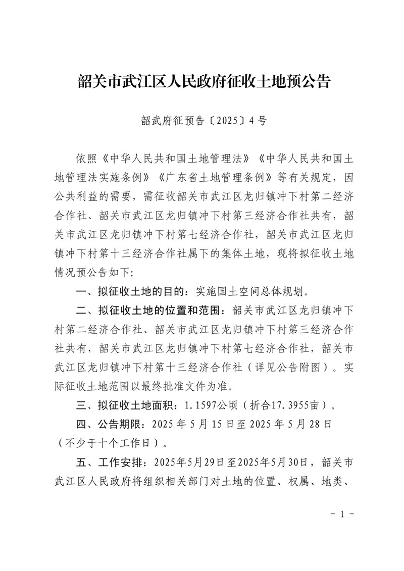 韶关市武江区人民政府征收土地预公告(韶武府征预告〔2025〕4号)