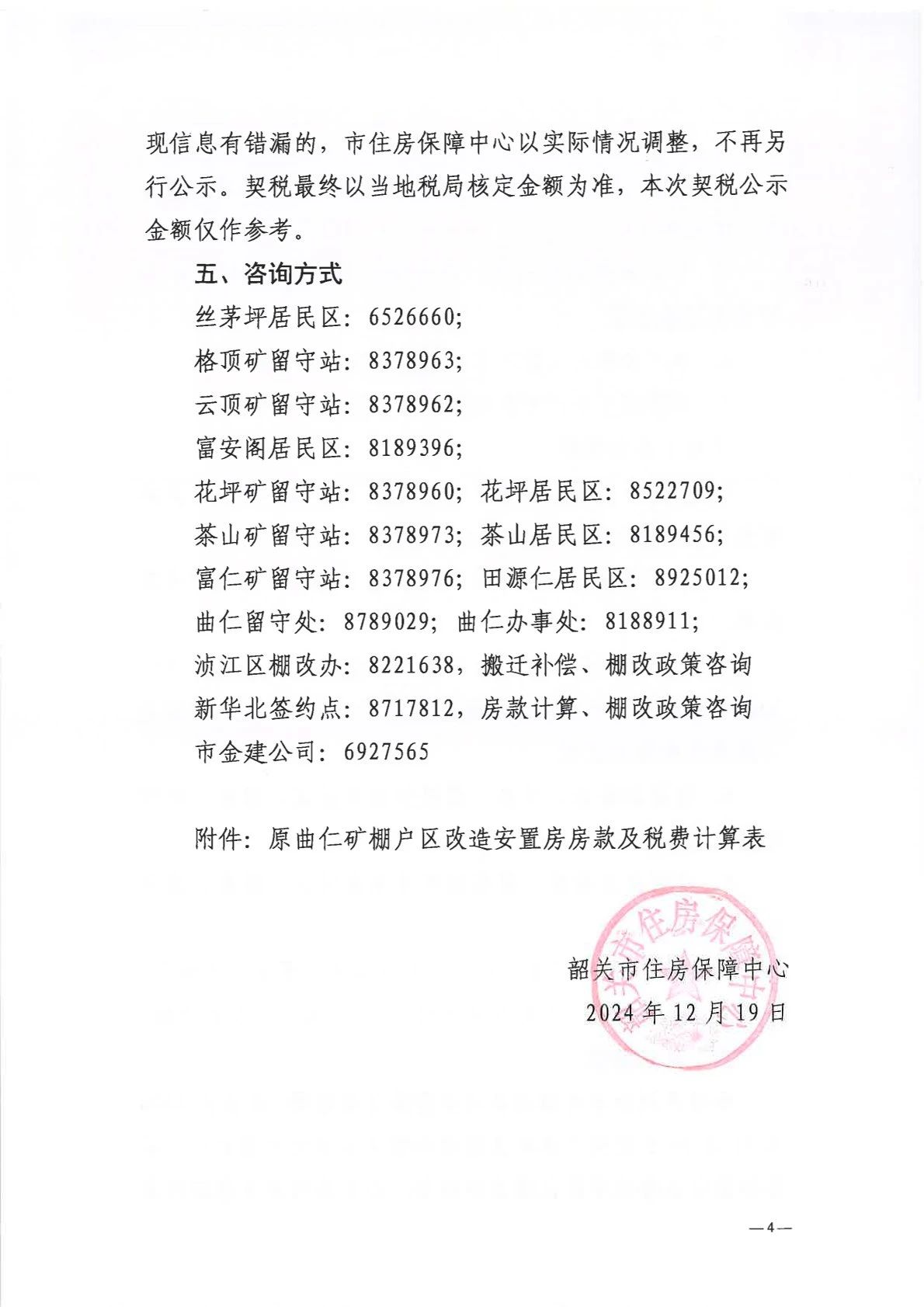 转发 关于原曲仁矿棚户区改造安置房房款及相关税费的通知重新公示说明