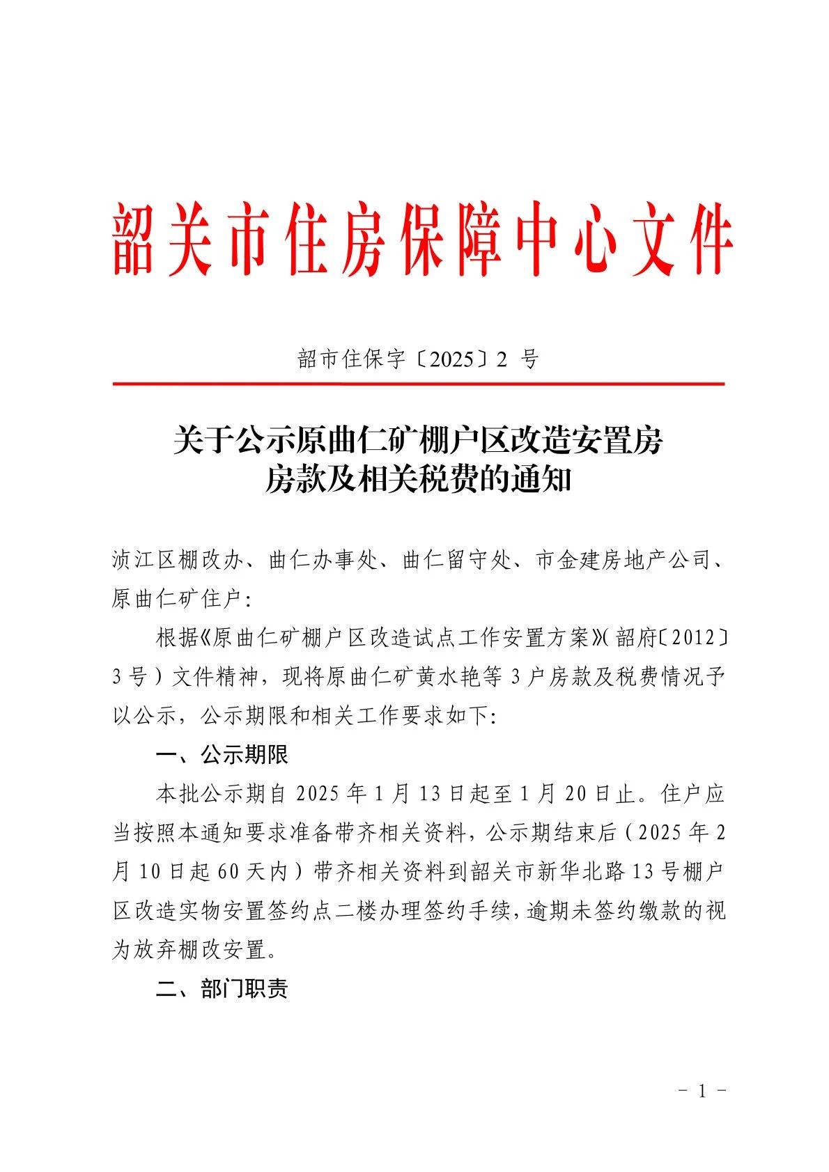 转发 关于公示原曲仁矿棚户区改造安置房房款及相关税费的通知
