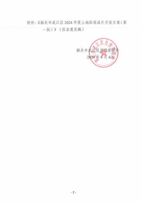 关于《韶关市武江区2024年度土地征收成片开发方案(第一批)》的公示(以此份为准)