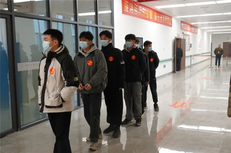 在体检现场,秩序井然,气氛严肃而又紧张。应征青年们整齐地排队,他们眼神坚定,怀揣着对国家的热爱和对军旅生活的向往,他们在导医的指引下,分批有序地完成了抽血、B超、内科、外科、视力、耳鼻喉科、心电图等项目检查。医务人员详细询问应征青年是否有过往病史、近期身体状况,认真核对检查,做到“谁检查、谁签字、谁负责”,确保为部队输送优质兵员。