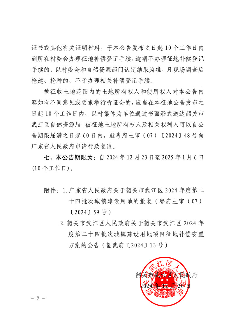 附件2:韶关市武江区人民政府关于韶关市武江区2024年度第二十四批次城镇建设用地项目征地补偿安置方案的公告 韶武府〔2024〕13号.zip