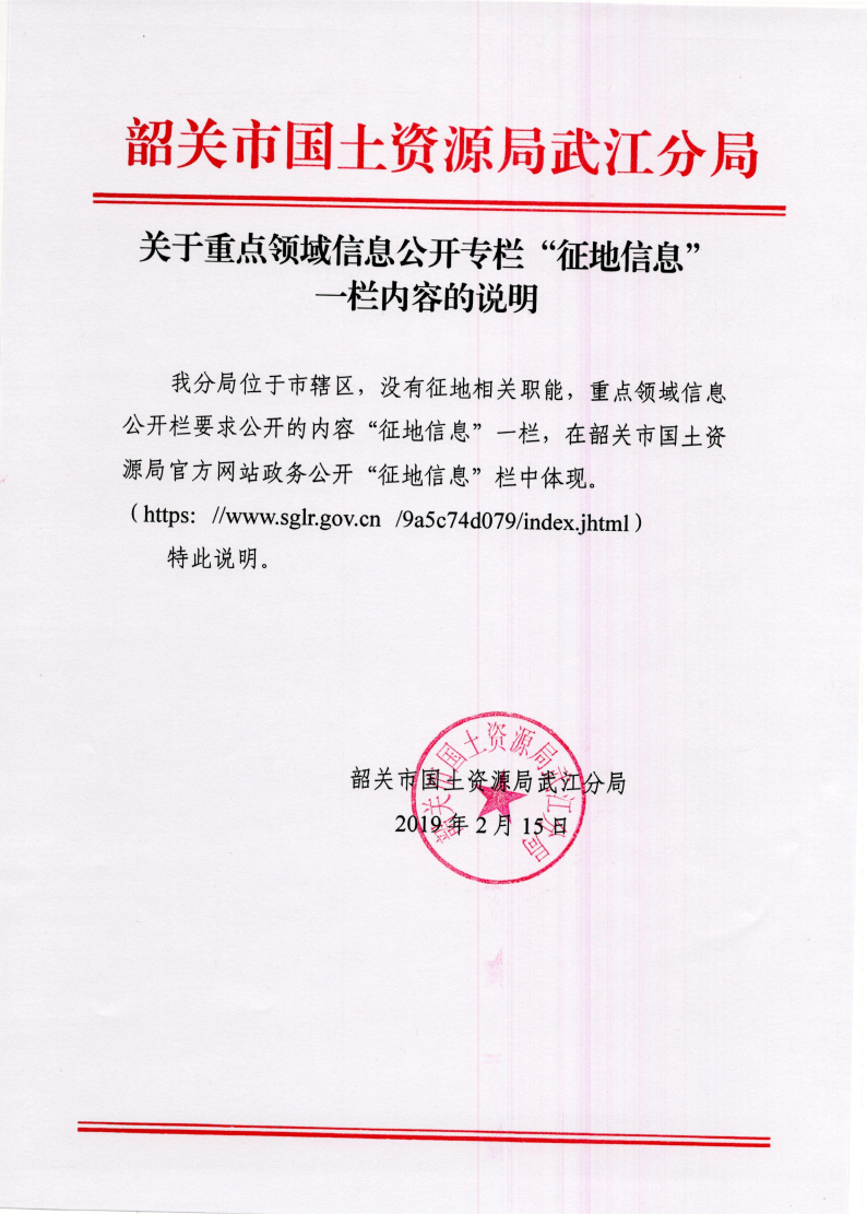 关于重点领域信息公开专栏“征地信息”一栏内容的说明