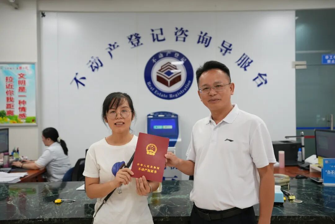 村民林成仪在市政务服务中心不动产登记窗口领取到了不动产权证书。