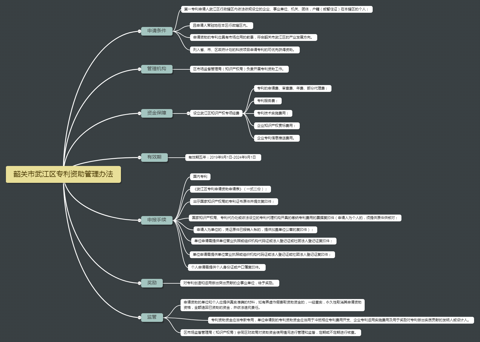 第一条 为了加强武江区专利创造工作,深化实施知识产权战略,提高创新能力,促进科学技术进步,推动创新驱动发展,根据《广东省人民政府关于印发广东省建设引领型知识产权强省试点省实施方案的通知》(粤府〔2016〕56号)、《广东省人民政府办公厅关于知识产权服务创新驱动发展的若干意见》(粤府办〔2016〕49号)、《广东省知识产权战略纲要(2007—2020年)》(粤府〔2007〕88号)、《韶关市专利资助管理办法》(韶府规〔2018〕1号)等规定,结合我区实际,制定本办法。